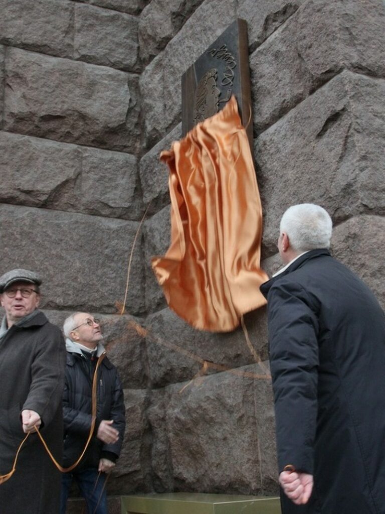 Мемориальную доску выполнили скульпторы Андрей и Павел Наличи, которые также присутствовали на мероприятии, они же делали памятник на кладбище.