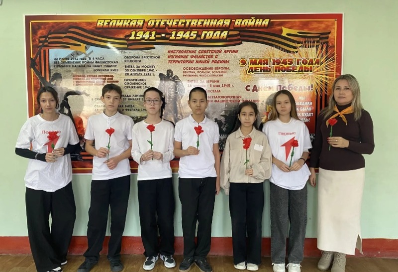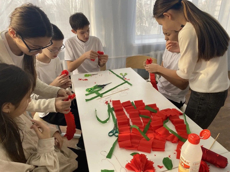 В МКОУ «Школа имени Махтумкули Фраги» после мастер-класса «Красная гвоздика» прошла минута молчания и торжественное возложение изготовленных цветов к месту памяти в школе — «Парта Героя», где юные патриоты отдали дань уважения всем неизвестным солдатам, павшим при исполнении воинского долга.