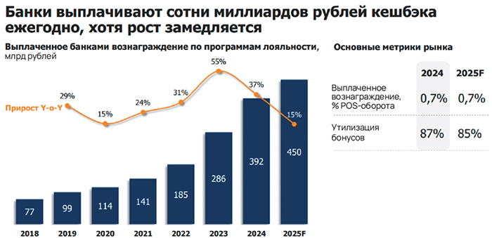 В ежегодном исследовании Frank RG «Банковские программы лояльности 2025», презентованном в ноябре, размеры получаемого клиентами кешбэка оценены в 450 млрд рублей.