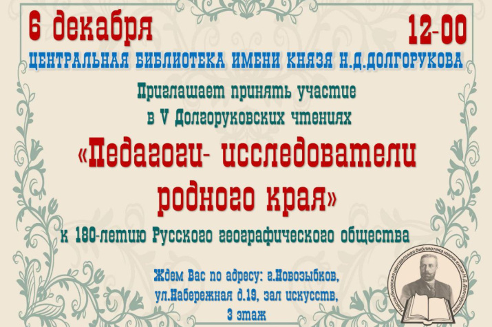 В чтениях примут участие члены Брянского отделения РГО, местных отделений РГО Брянского района и Почепского, ученые краеведы Александр Дудников, С.А. Приходько, работники библиотеки, исследователи, учащиеся педагогического и медицинского колледжей, школы Новозыбковского района, общественность и работники культуры города Новозыбкова.