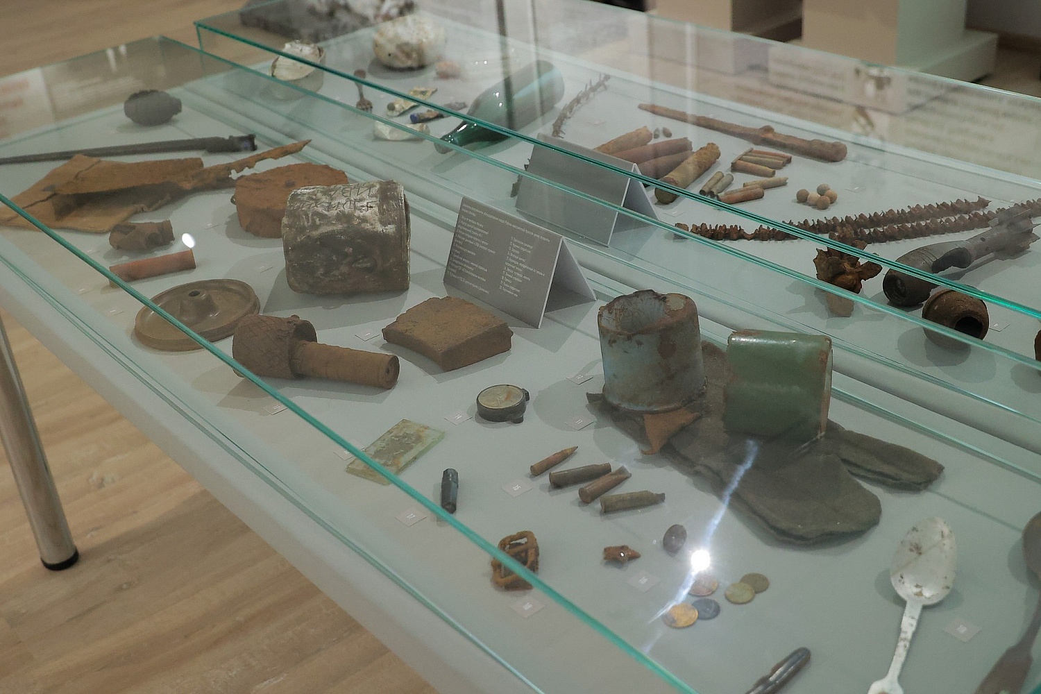 Экспозиция включает более ста исторических документов, фотоматериалов, свидетельских рассказов и итогов поисковых экспедиций, размещенных на стендах и в витринах.