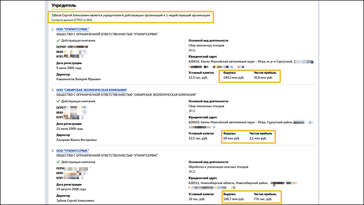 Три из пяти наиболее крупных и прибыльных компаний отработали в прошлом году с совокупной выручкой более 400 млн рублей // Скриншот страницы сайта checko.ru