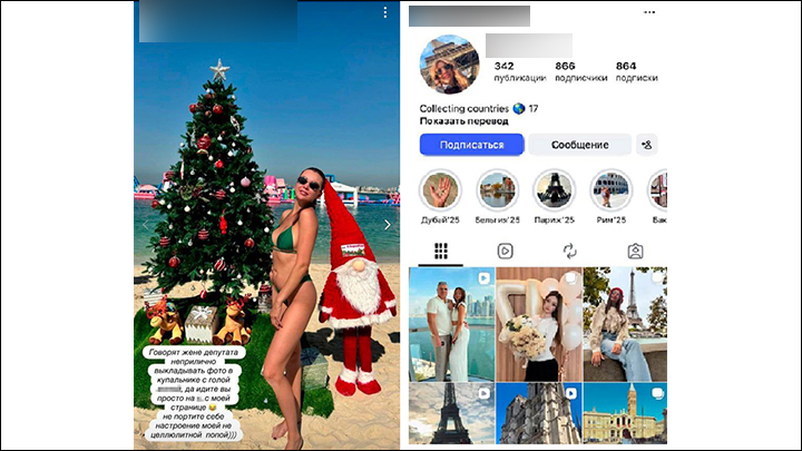 Но вернёмся к Екатерине Новиковой. Сейчас её страница закрыта от любопытных глаз, однако интернет-пользователи уже в курсе всего, что нужно знать о жене депутата. Судя по её контенту, она большая любительница путешествовать. Так и пишет о себе: