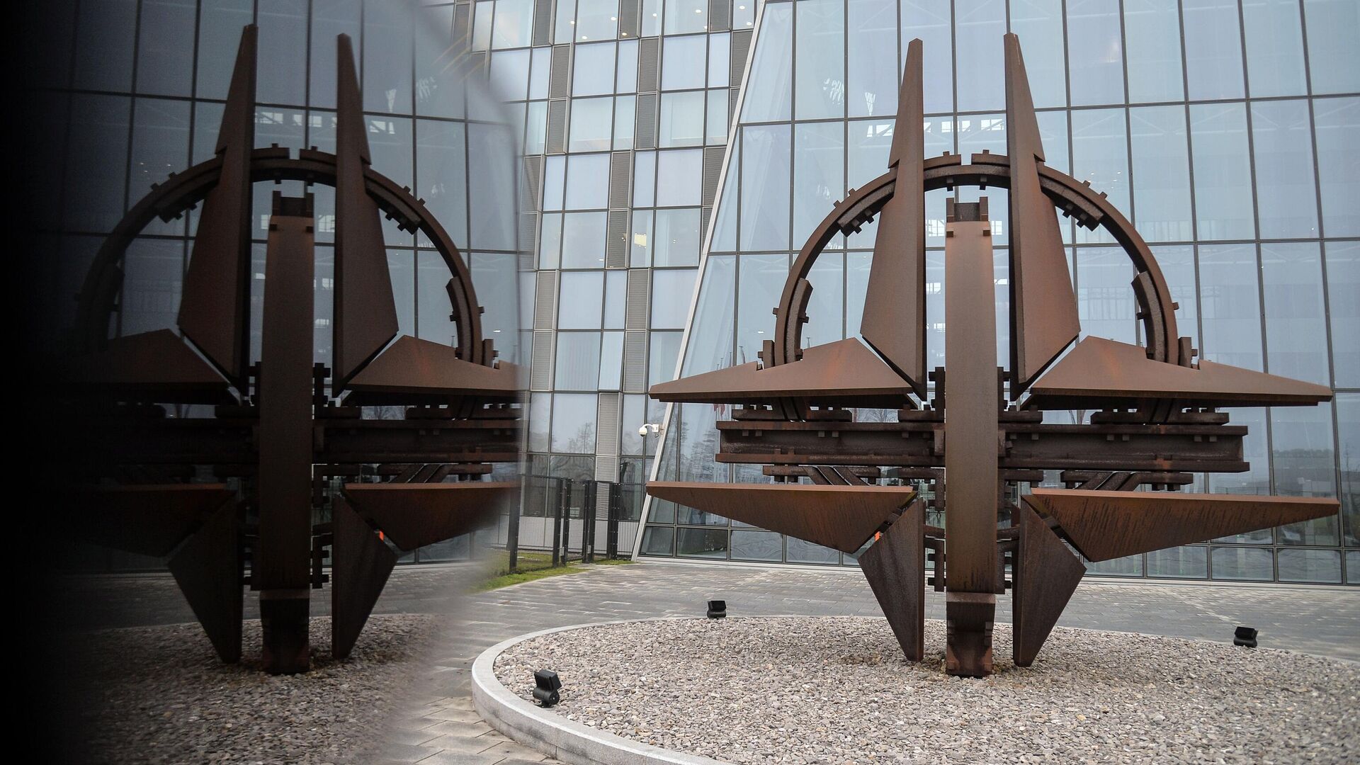 Логотип НАТО перед штаб-квартирой в Брюсселе