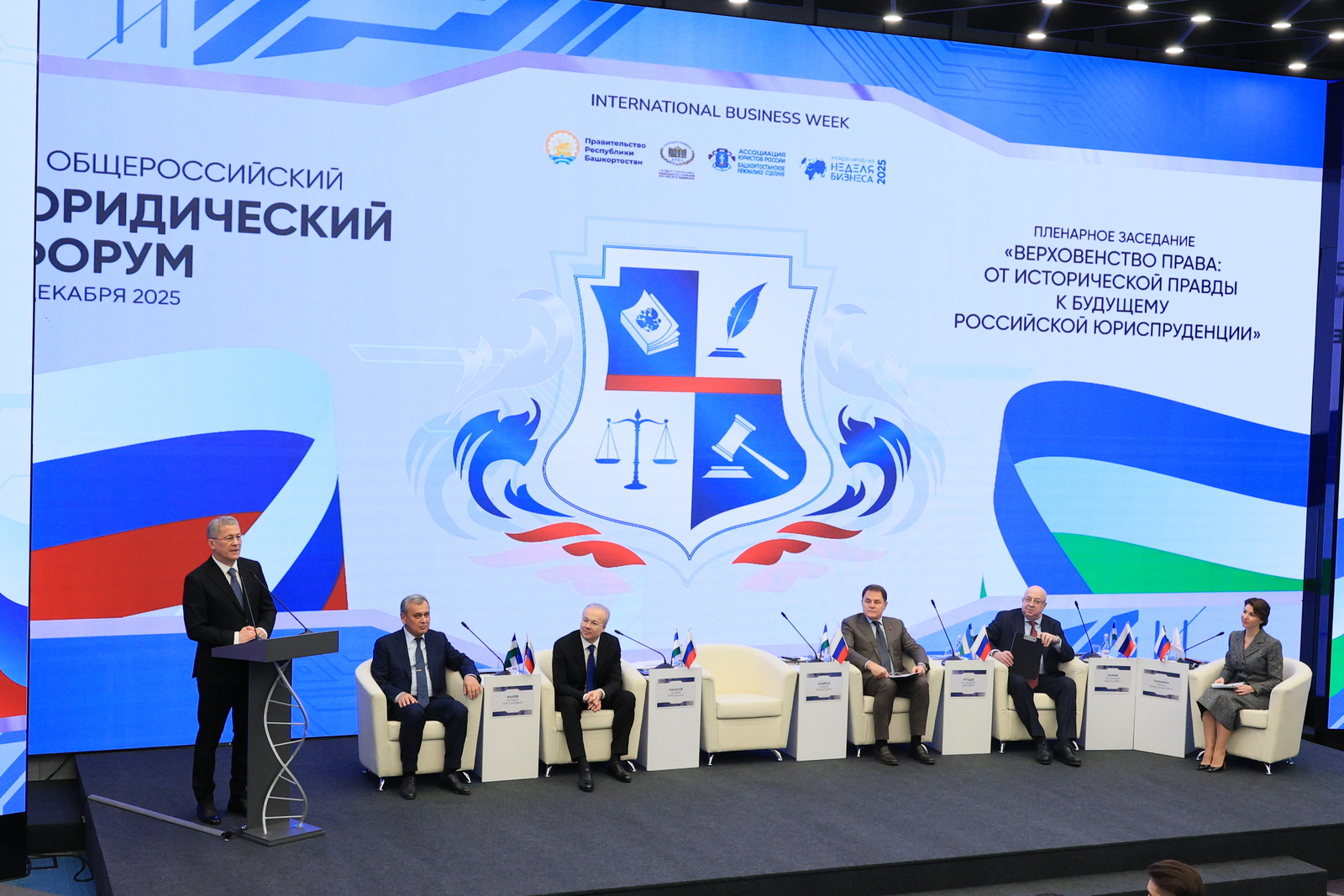 Глава Башкирии Радий Хабиров обратился с приветственным словом к участникам пленарного заседания Общероссийского юридического форума в Уфе.