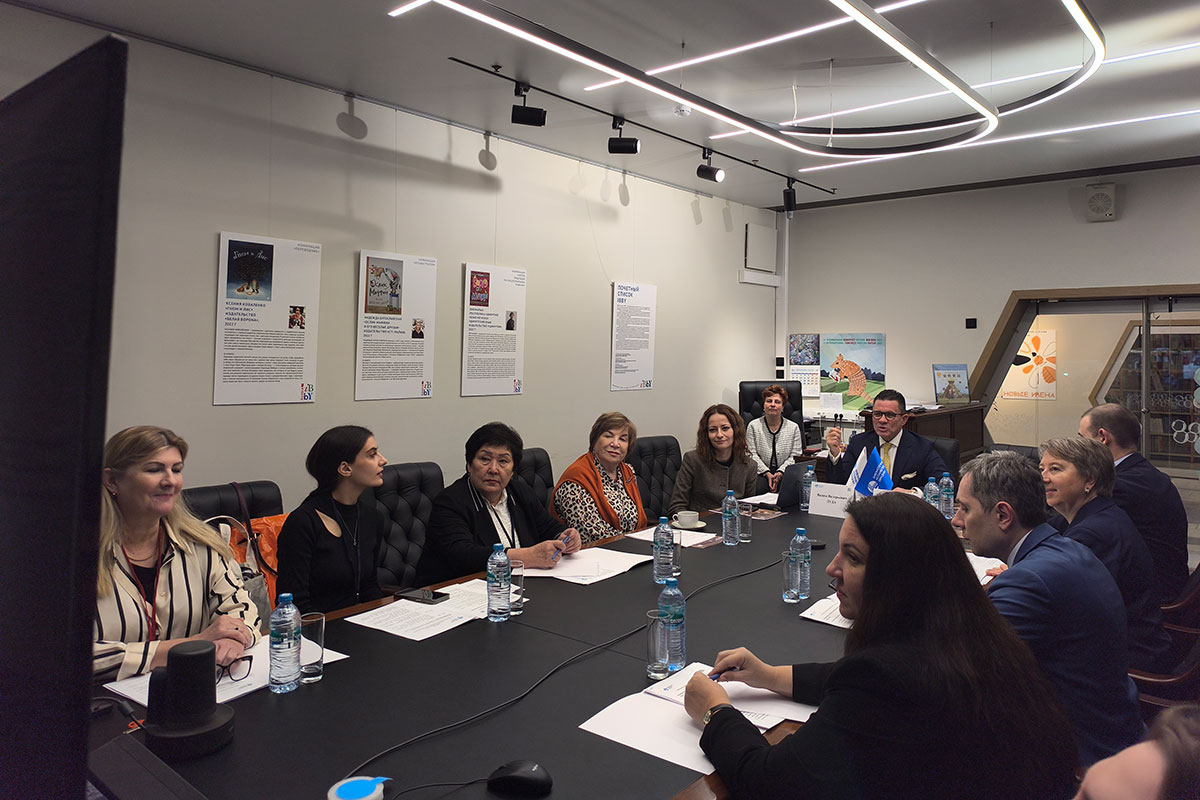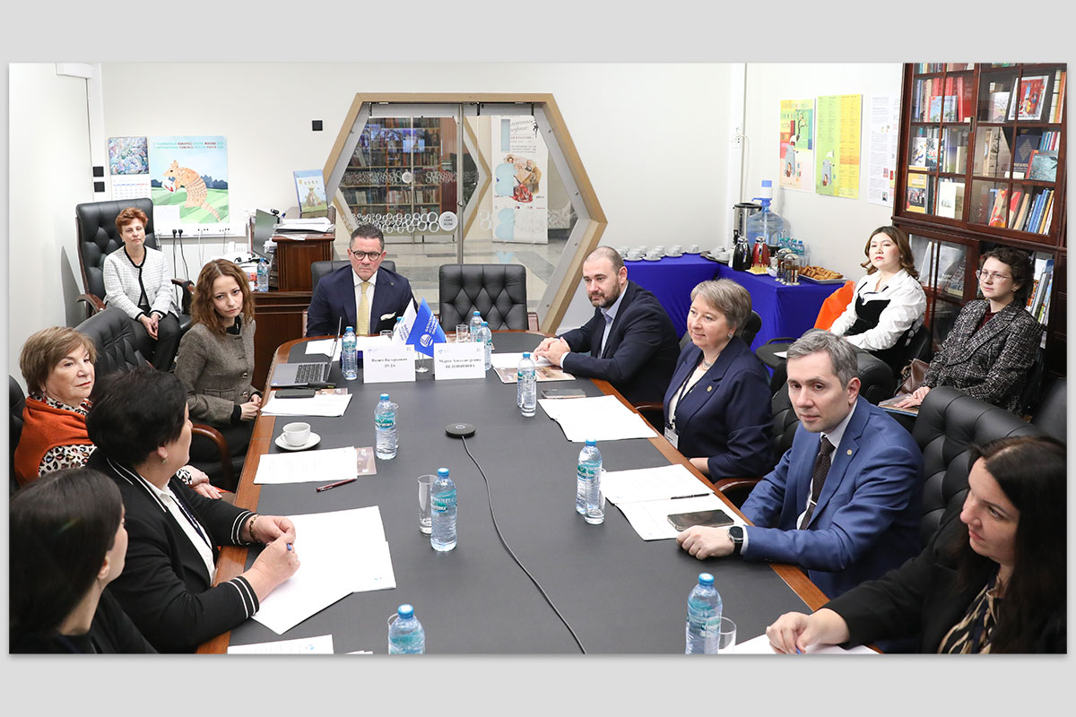 Фото: РГДБ Слева направо: заместитель директора РГДБ Анжела Лебедева, заведующая отделом международных связей Национальной библиотеки Армении Астхик Хачатрян, директор Республиканской библиотеки для детей и юношества имени К. Баялинова Роза Султангазиева, директор Российской государственной библиотеки искусств Ада Колганова