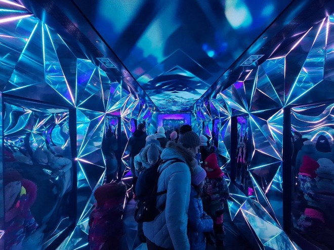 Впервые в Красноярск также приехал вагон Снежной королевы – вход в него сделали свободным. Гости побывали в ледяном царстве, прошли через мир кривых зеркал и встретились с главной героиней сказки.