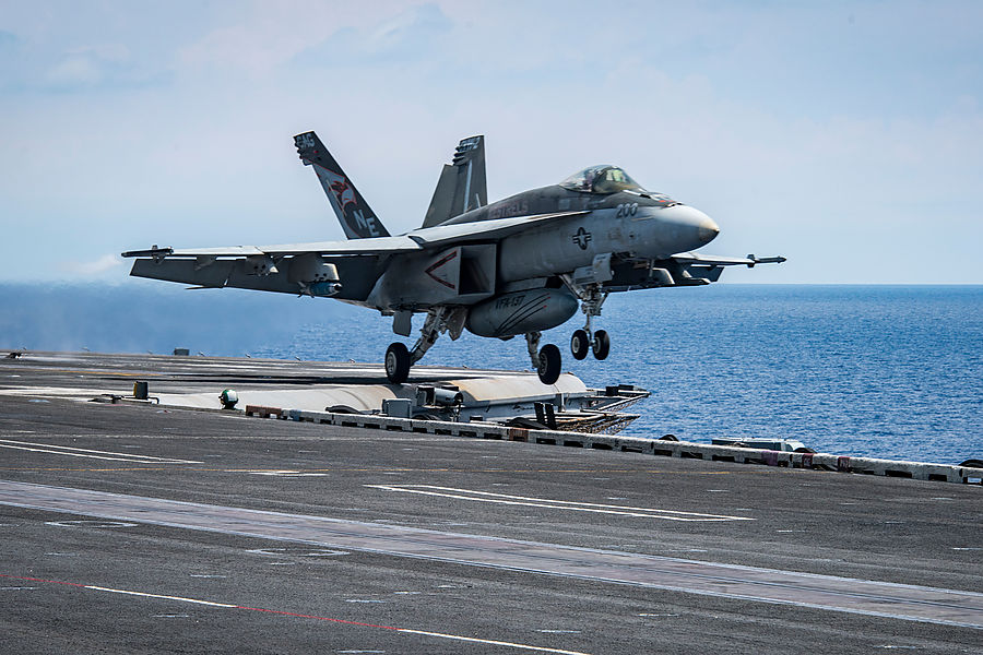 F/A-18E Super Hornet ВМС США взлетает с авианосца "Карл Винсон"