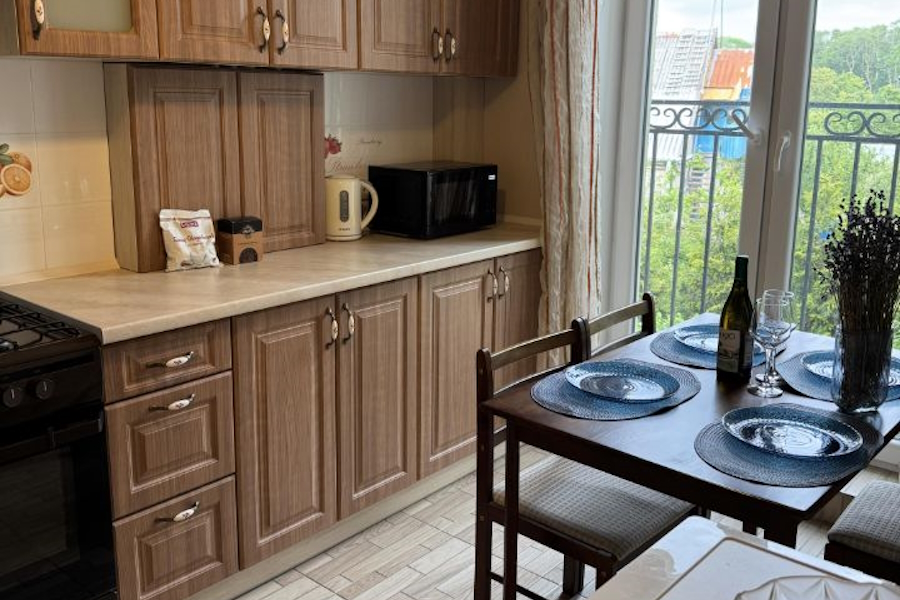 «Уютная квартира для отдыха в курортном городе Пионерский» площадью 34,1 м²находитсяна втором этаже кирпичной шестиэтажки 2015 года постройки на ул. Советской. «К вашим услугам большой двухместный диван, меблированная кухня, микроволновая печь, холодильник, стиральная машина, необходимая посуда, чайник, утюг, гладильная доска, сушилка для белья, фен. Также гостям предоставляется постельное белье и полотенца», — говорится в описании.