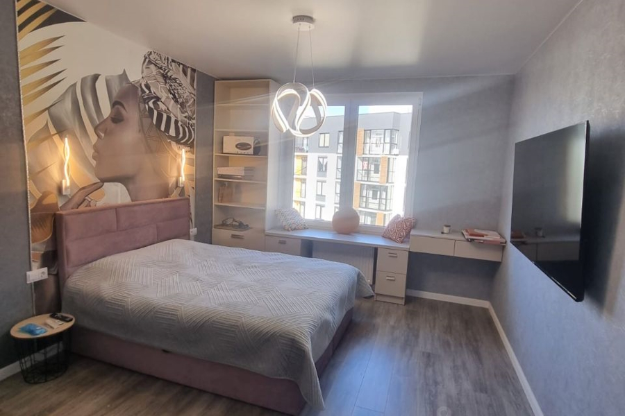 На Октябрьской улицесдаётся«стильная однокомнатная квартира» площадью 43 м² в «современном ухоженном доме» 2022 года постройки. Объект расположен на пятом этаже из шести. «В квартире выполнен дизайнерский ремонт, который подчёркивает современность и комфорт», — говорится в описании. В числе упомянутых особенностей подоконник-лежанка «для комфортного отдыха» и стиральная машина с сушкой, «что делает быт ещё удобнее». В доме предусмотрены пассажирский лифт и безбарьерная среда,