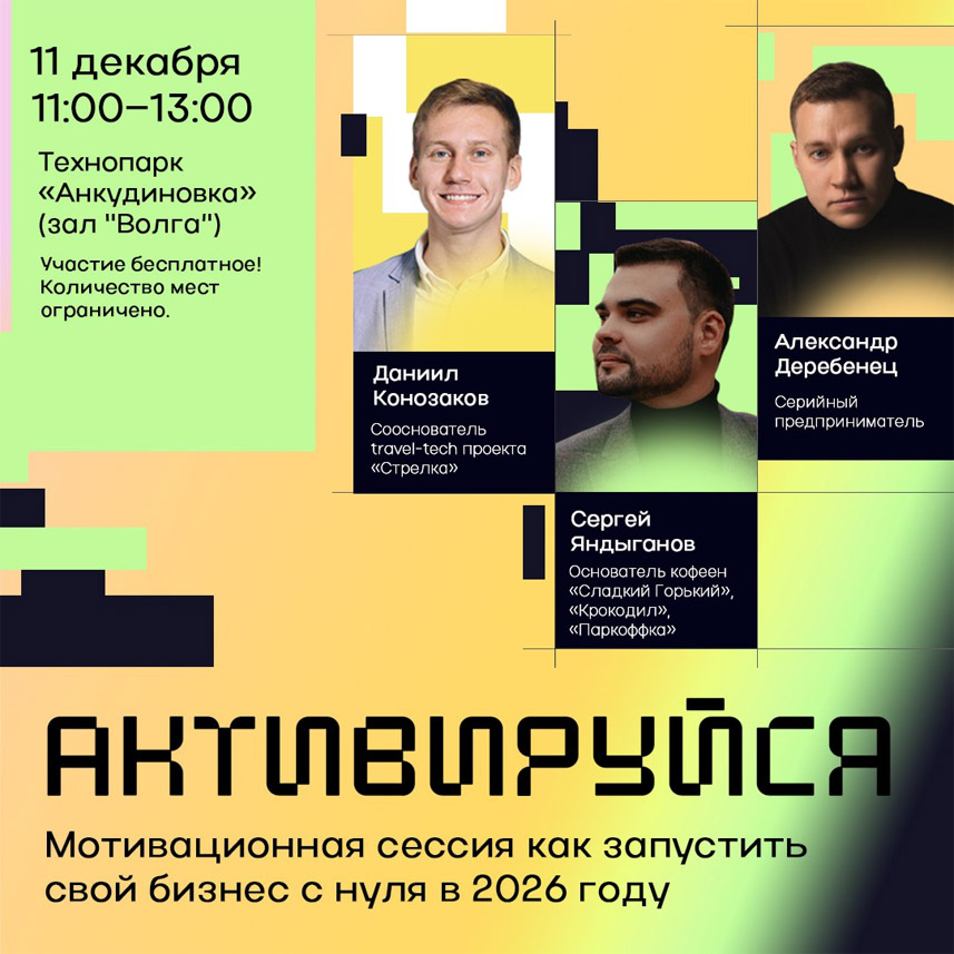 Сессия пройдет в технопарке «Анкудиновка» (зал «Волга») 11 декабря с 11:00 до 13:00.