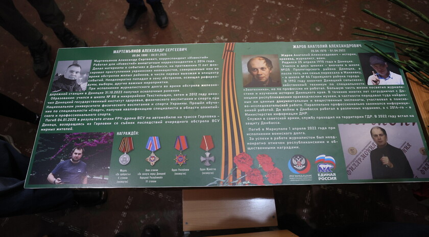 Также увековечено имя корреспондента «Известий» Александра Мартемьянова, который погиб при атаке украинского FPV-дрона на трассе Донецк — Горловка 4 января.