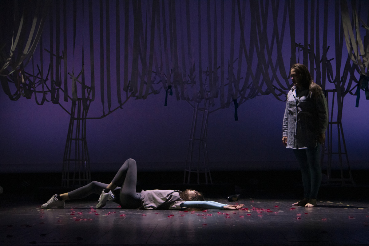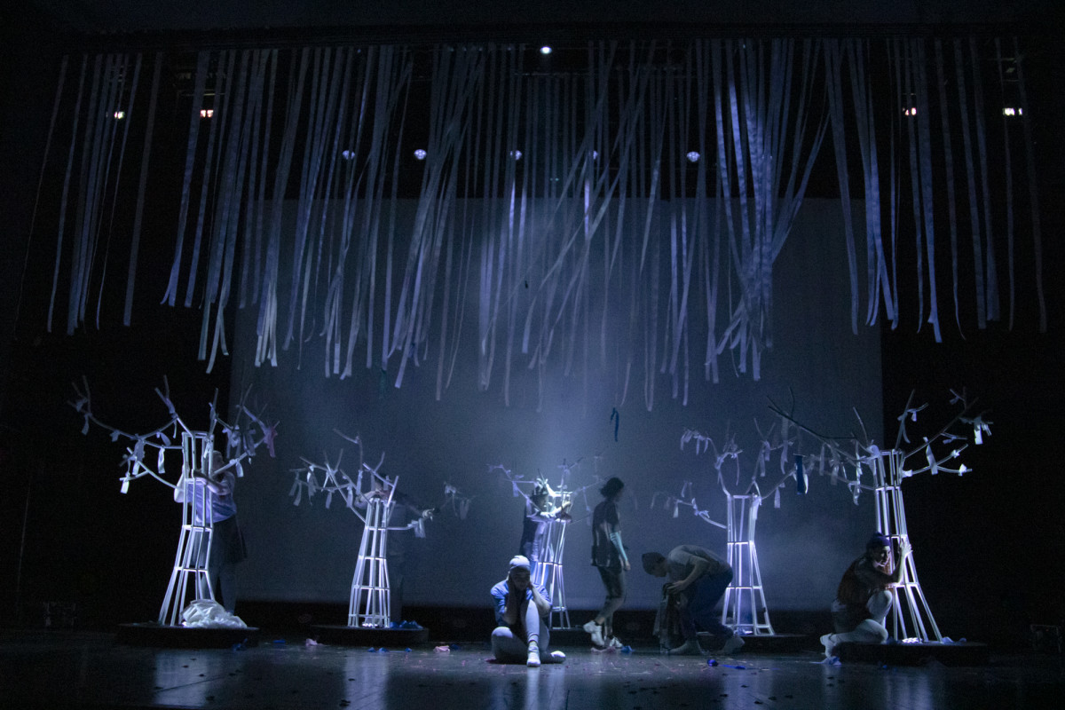 Начало спектакля было необычным. Какие-то люди с телефонами вошли в зал, ведя беседы и потом неожиданно переместились из реального мира на сцену, в метафорический лес и фантастический мир поэтических образов, навеянных бессмертными сонетами Шекспира.