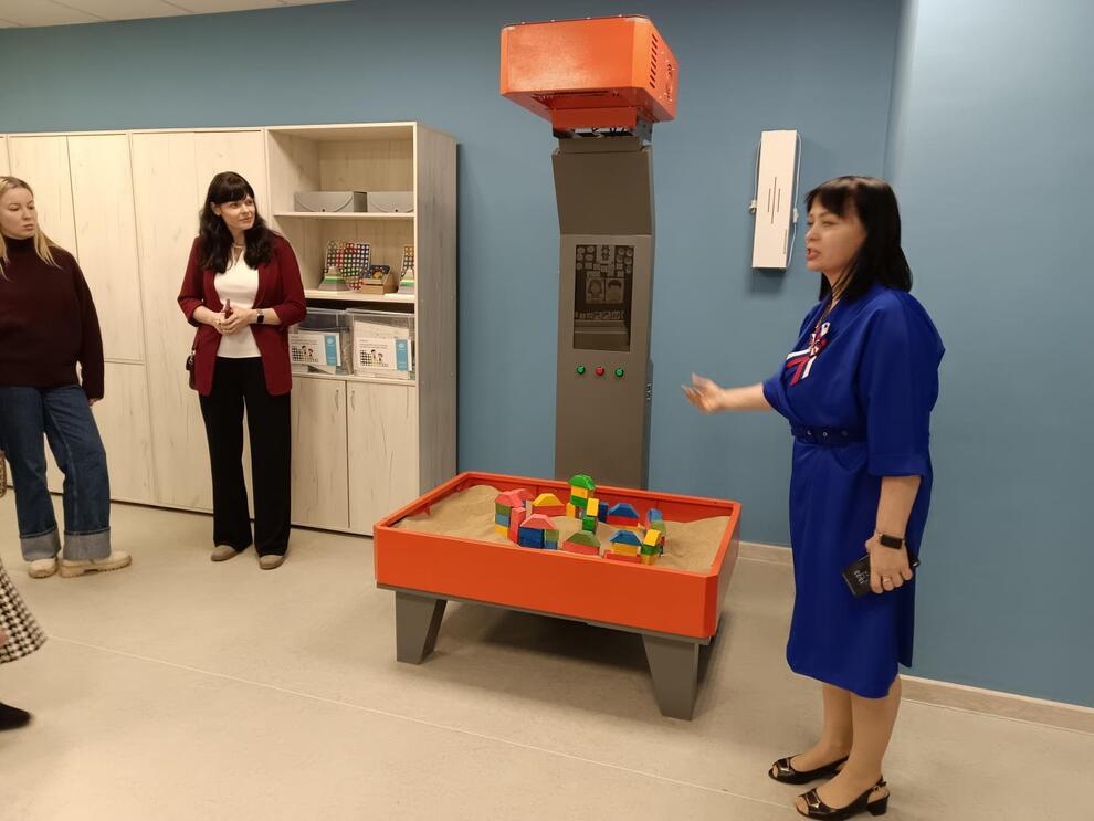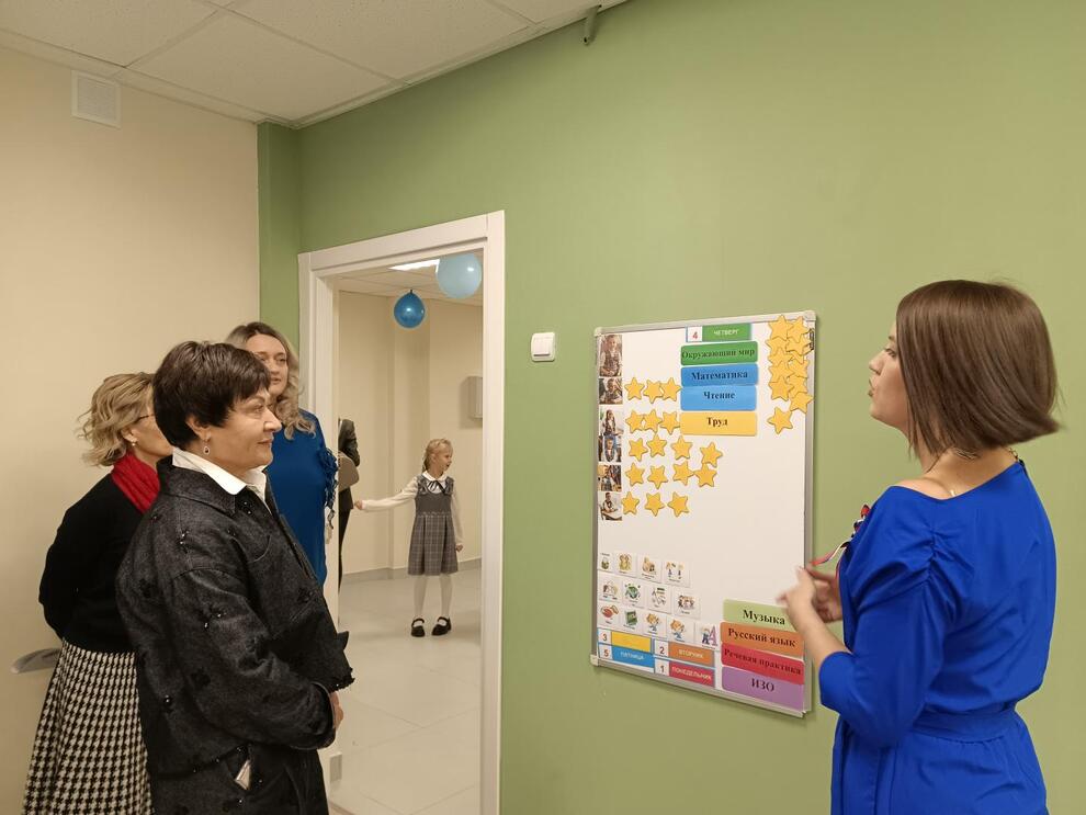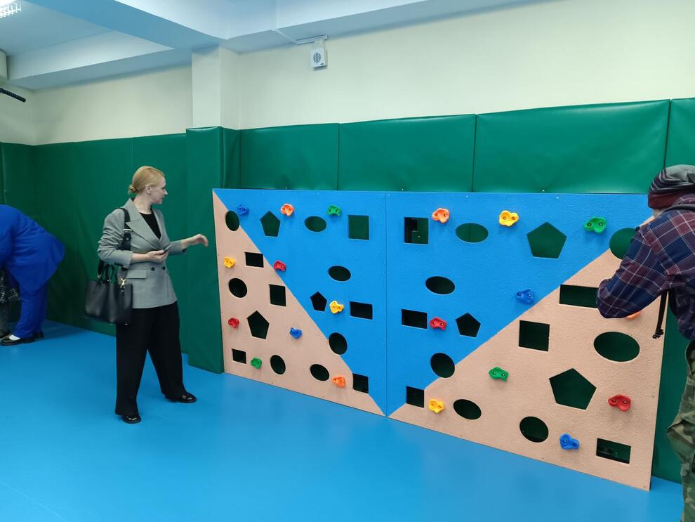 Олеся Валерьевна провела для гостей экскурсию по школьным помещениям, претерпевшим полную реновацию, в результате чего в школе появилась специальная среда для ребят с особыми образовательными потребностями. Здесь и комната релаксации, где ребенок может отдохнуть от общения, уединиться и почувствовать себя защищенным; и комната для игр с разнообразным развивающим оборудованием; и спортивный зал, где могут заниматься все ученики школы, включая ребят с ОВЗ.