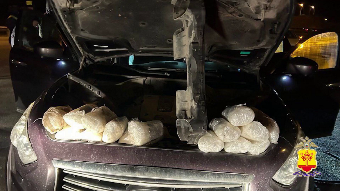Несмотря на первоначальные отговорки подозреваемых об отсутствии у них запрещённых предметов, сыщики при тщательном досмотре их машины в присутствии понятых обнаружили под капотом, в багажнике и салоне тайники, в которых лежали в общей сложности 42 упаковки с гашишем и мефедроном общим весом порядка 40 килограммов, что в дальнейшем было установлено экспертами.