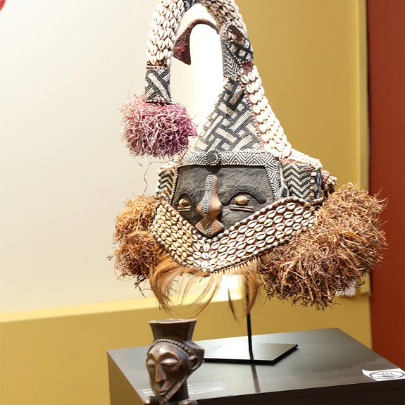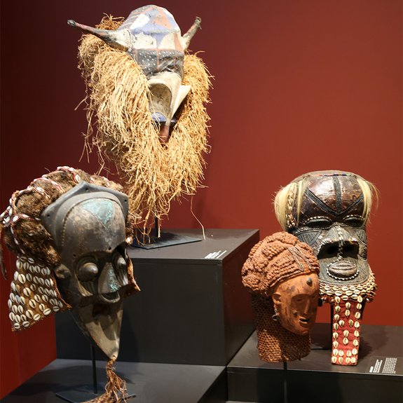 У африканских племен широкое распространение получила резьба по дереву с геометризованной композицией — предметы такого рода и составили костяк коллекции. В регионе бытуют традиционные обряды с использованием масок, так что неудивительно, что их в экспозиции больше всего. Маски вырезали из цельного куска дерева, многие достигали огромных — относительно человеческой головы — размеров. Носить такие маски на голове и плечах, а тем более танцевать в них было тяжело. Поэтому ритуальным танцам долго обучались, а маски порой удерживали зубами (видимо, у представителей африканских племен они были очень крепкими).