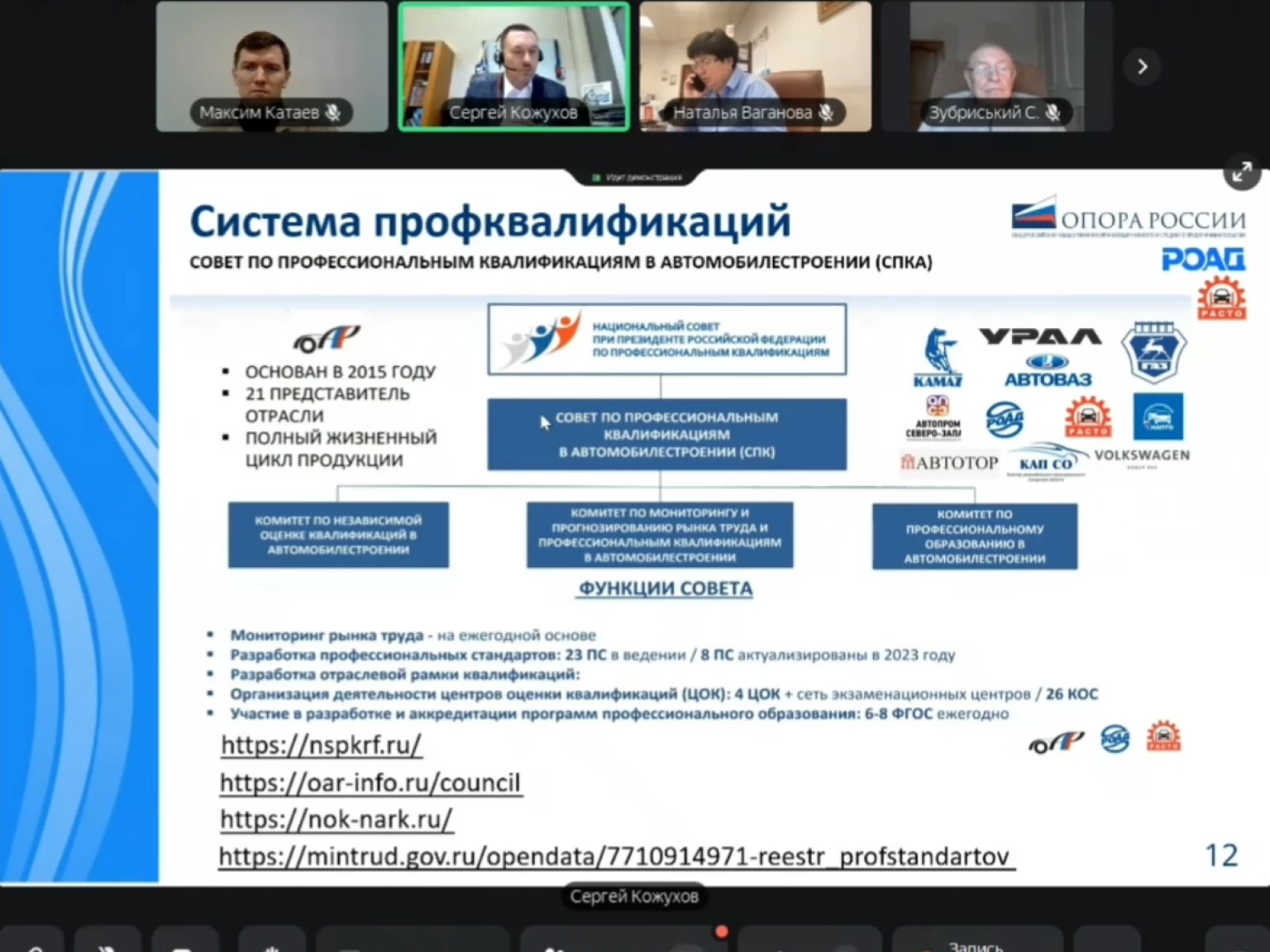 27 ноября прошел вебинар Комитета «ОПОРЫ РОССИИ» по развитию предпринимательства в сфере автобизнеса, посвященный кадровой безопасности бизнеса. Ведущими спикерами выступили заместители Председателя Комитета — председатель Комитета СПКА по профессиональному образованию в автомобилестроении, директор Академии РОАД Сергей Кожухов и председатель ассоциации «РАСТО», член СПКА в автомобилестроении, член экспертного Совета ФУМО по УГСН Техника и технологии наземного транспорта Ольга Селезнева.