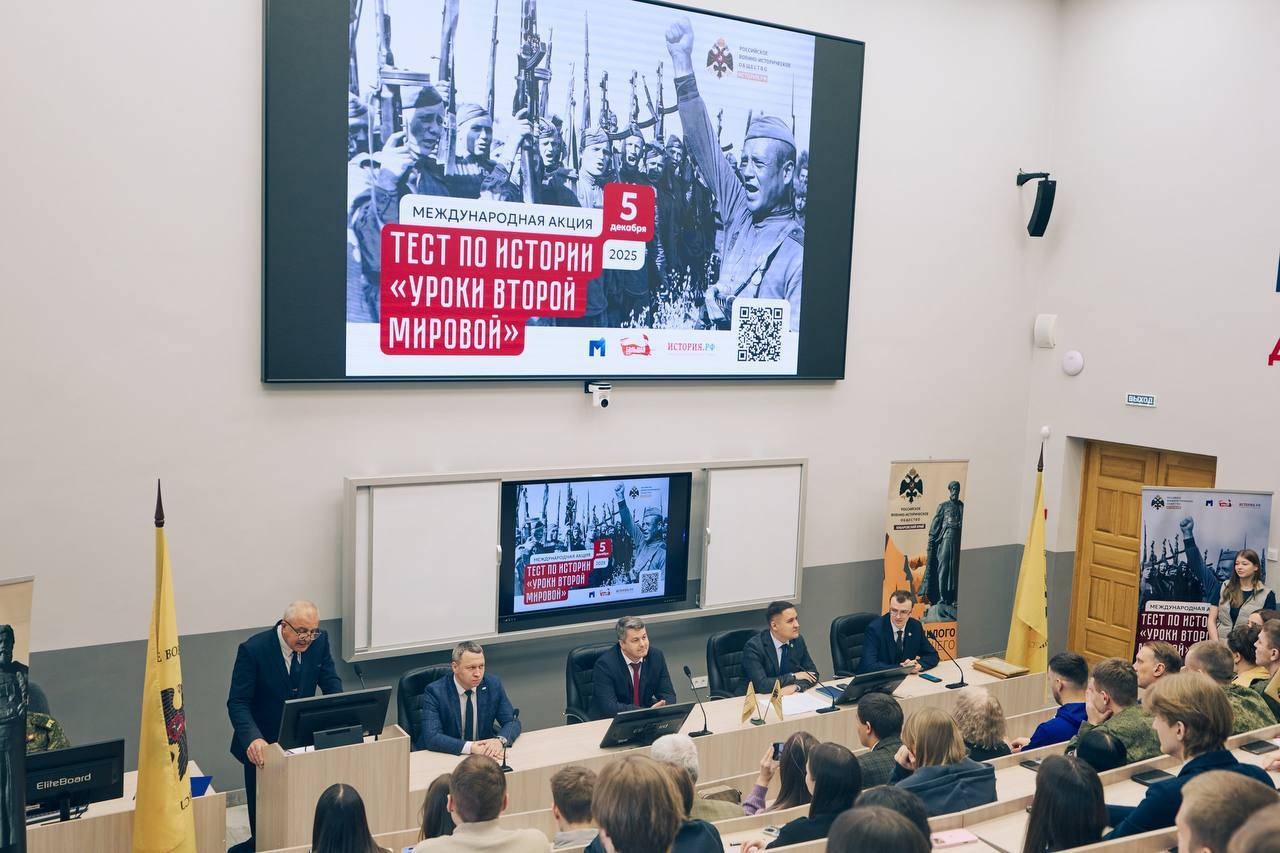 - Сегодняшнее мероприятие — не просто проверка знаний истории. Важно задуматься об историческом пути нашего государства, о нашей идентичности как единого народа. Это — основа суверенитета. Я горжусь тем, что вижу здесь ребят из военного учебного центра: их учебная и воспитательная работа имеет особое значение. С нами сегодня и студенты-медики. Наш вуз теперь имеет статус межвузовского военно-учебного центра — это большое достижение, - подчеркнул Владимир Буровцев.