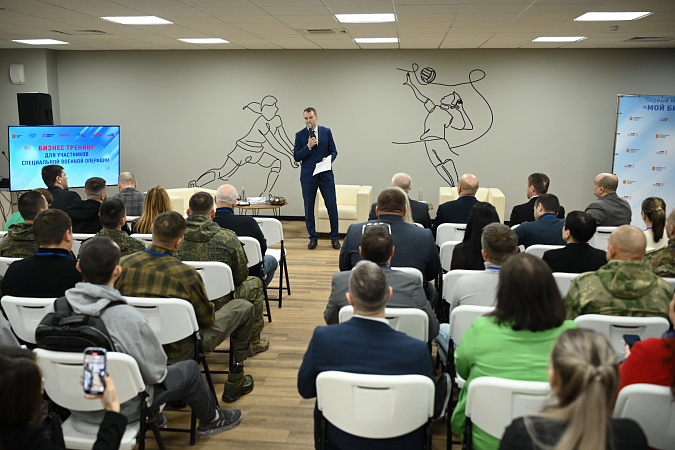 Также на этой площадке прошел бизнес-тренинг для участников СВО и членов их семей, действующих военнослужащих. Всего порядка 60 человек. Тренинг провелмастер спорта России по плаванию, Чемпион России по плаванию среди студентов Александр Папшис. Спортсмен поделился успешными кейсами бизнеса в сфере спорта, что вызвало у участников оживленную дискуссию и интерес к этой сфере предпринимательства.