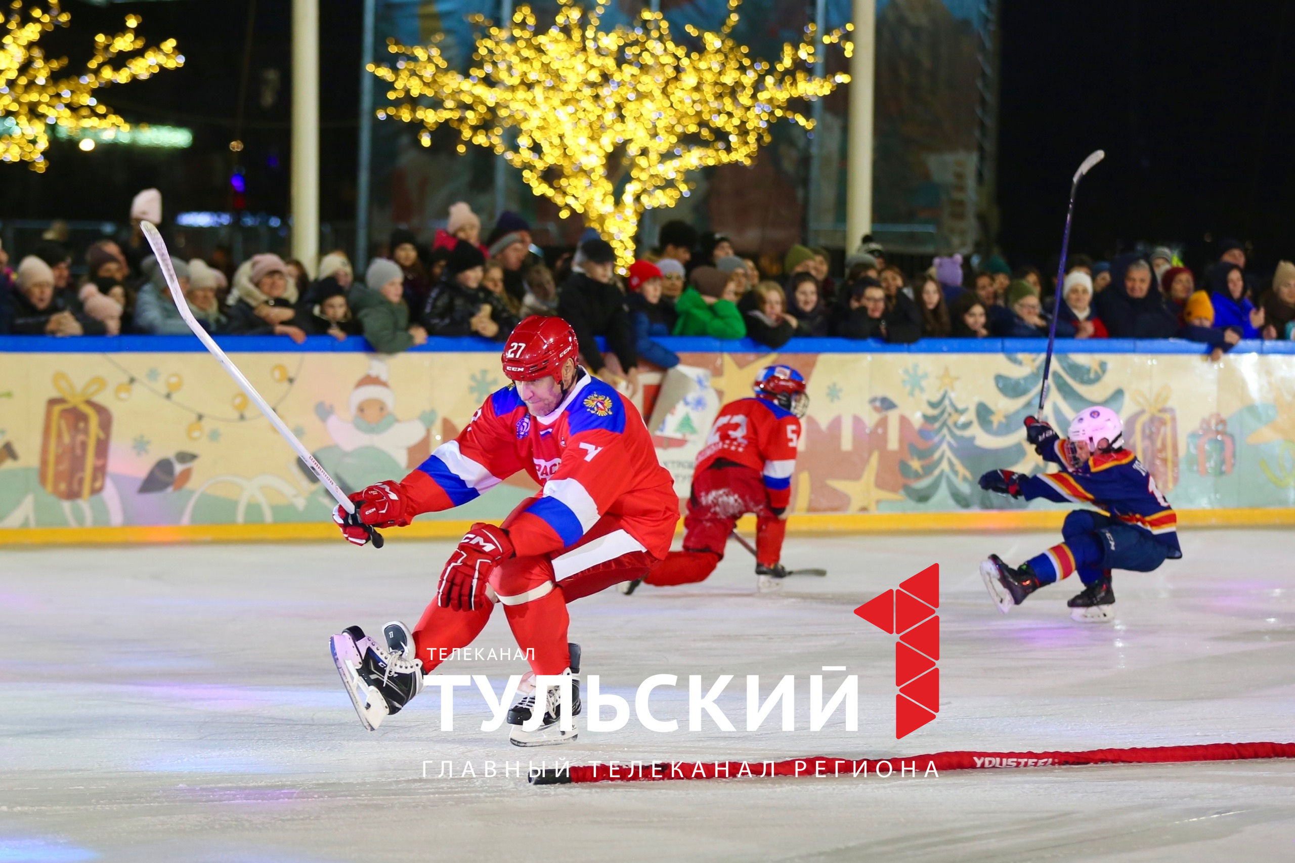 Кстати, на главную ледовую площадку Тульской области вышел председатель правления Федерации хоккея Роман Ротенберг.