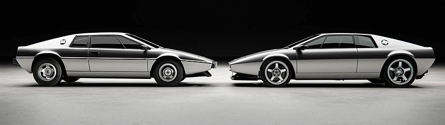 Кузов оригинального Lotus Esprit, образно говоря, представляет собой большую стеклопластиковую «мыльницу» с горизонтальной линией разъёма на уровне поясной линии, а у рестомода кузов углепластиковый, без этой линии разъёма и с куда более точной геометрией. Помимо лишних технологических элементов, портящих созданный Джуджаро клиновидный образ, разработчики избавились от наружных дверных ручек, которые Esprit Series 1 позаимствовал у недорого седана Morris Marina. Значительно усилены стойки и крыша. Подъёмные фары сохранены, но их высота стала меньше благодаря компактной современной светодиодной начинке. Задние фонари стали у́же и объединены чёрной рамкой.