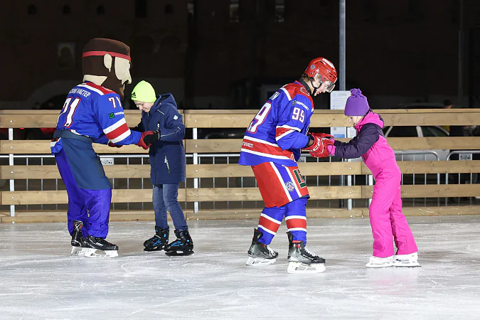 Праздничную программу украсили выступления звезд мирового спорта. На лед вышли двукратный призер Олимпийских игр Ирина Слуцкая и вице-президент Федерации хоккея России Роман Ротенберг. Они не только приняли участие в церемонии, но и провели мастер-классы для юных спортсменов и зрителей.