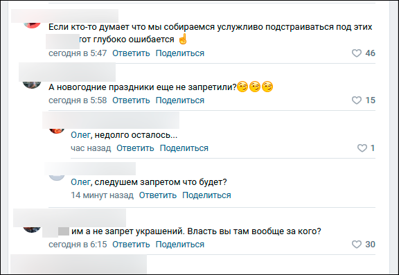 Блогер Сергей Колясников обратил внимание, что подобный запрет сложно представить, например, в Китае, где люди в Новый год украшают не только подъезды, но и двери квартир. А в России некоторым чиновникам неплохо было бы вспомнить об утверждённой президентом стратегии национальной политики, которая закрепила приоритет интересов коренного населения и роль русского народа как государствообразующего:
