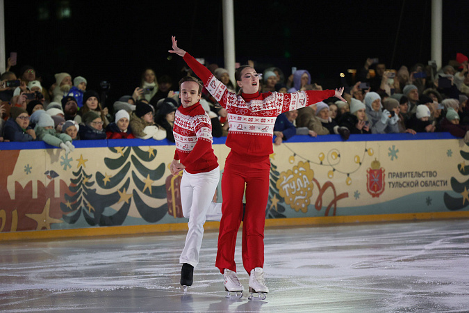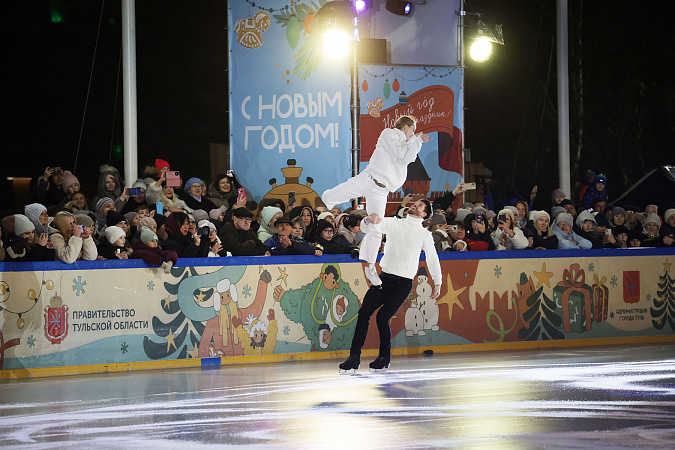 На торжественной церемониипо приглашению Дмитрия Миляева выступили артисты шоу звезды фигурного катания, двукратного призера Олимпийских игр Ирины Слуцкой «Лед — это…». ТакжеИрина Слуцкаяпровела мастер-класс для тульских фигуристов. Она поздравила собравшихся с открытием катка и елки в историческом центре города.