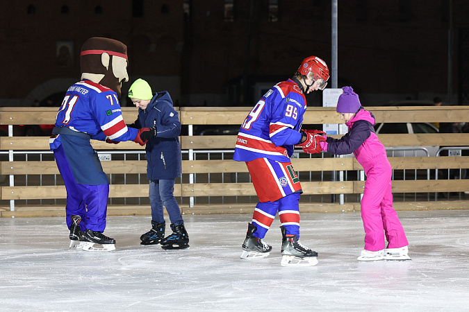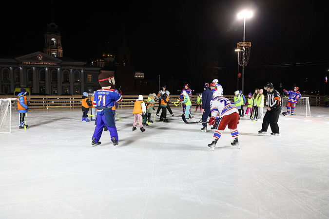 На малом Губернском катке хоккеисты молодежной команды «Академии Михайлова» провели мастер-класс для воспитанников тульской школы, а также для детей участников СВО, многодетных семей и всех желающих.