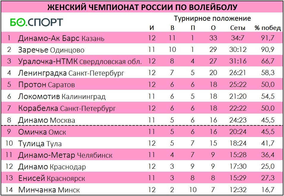Выиграв 11 из 12 матчей, «Динамо-Ак Барс» лидирует в чемпионате России. «Ленинградка» с семью победами идет на седьмом месте. В следующем туре казанская команда на своей площадке сыграет с ближайшим преследователем — «Заречьем» из Одинцова. Начало матча 10 декабря в 16:00.