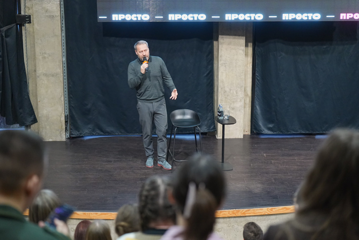 Председатель Законодательного Собрания Северной столицы Александр Бельский 5 декабря в амфитеатре молодёжного пространства ПРОСТО на Карповке встретился с юными петербуржцами — победителями грантовых конкурсов на реализацию социальных проектов.