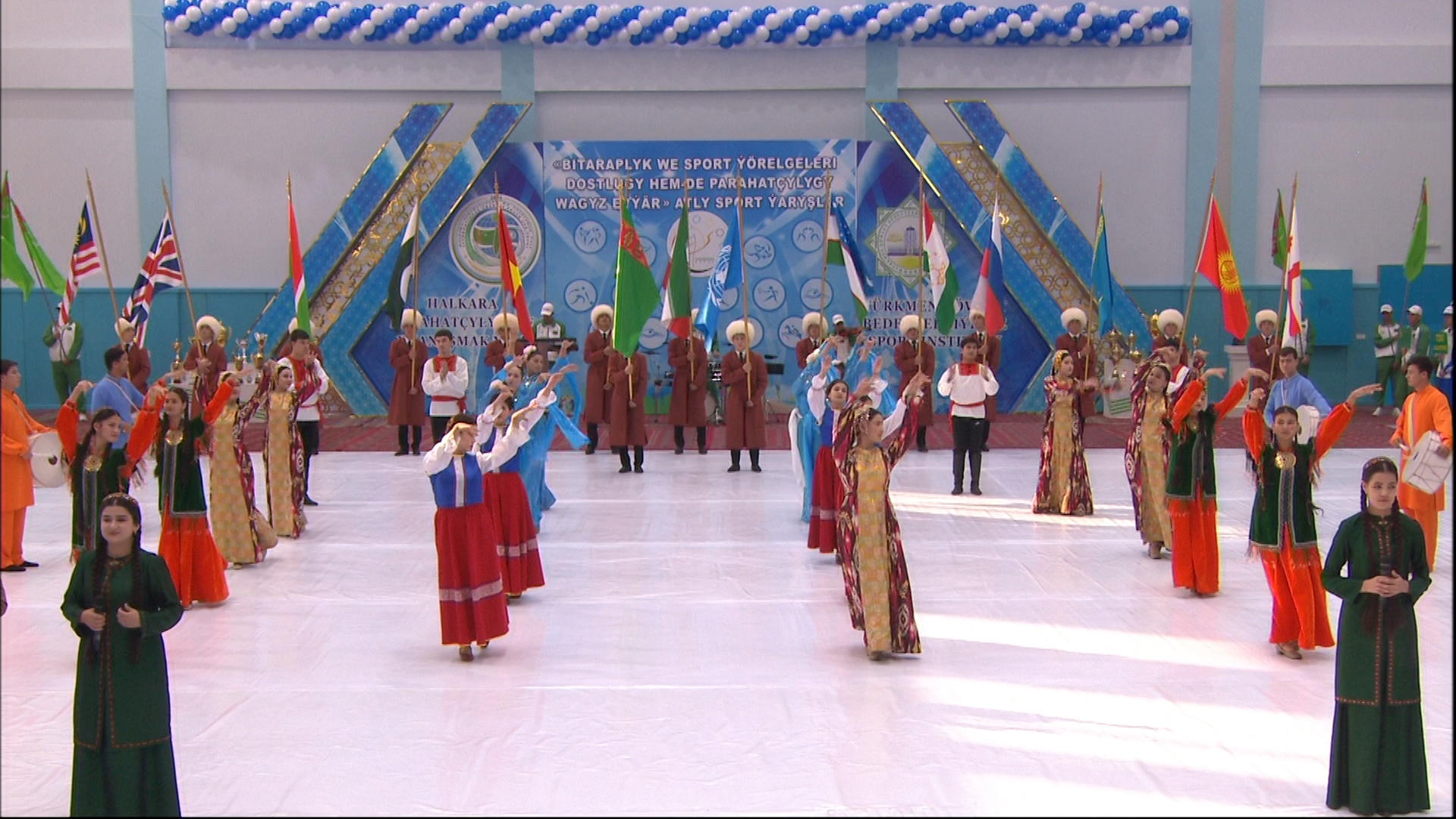 На церемонии открытия туркменские студенты представили яркую программу с танцами народов мира. В течение соревнований участники будут состязаться в 20 видах спорта, включая легкую атлетику, плавание, баскетбол, гандбол, футзал, самбо, греко-римскую и национальную борьбу, а также шахматы и теннис.