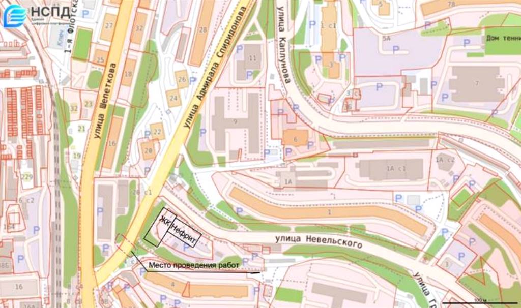 Специализированный застройщик «НК ТРАСТ», который реализует проект многоквартирного жилого дома на улице Невельского во Владивостоке, начал аварийно-восстановительные работы на сети хозяйственно-бытовой канализации на улице Спиридонова. В связи с этим возможны затруднения в движении транспорта.