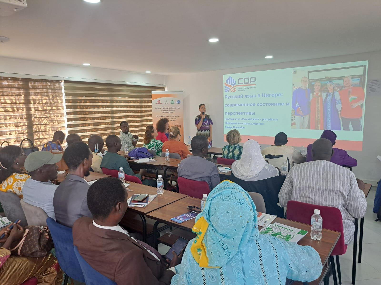 К основным проблемам в распространении русского языка в учебных заведениях региона африканские участники отнесли дефицит кадров, недостаточную обеспеченность современными учебными материалами, большое количество учеников в классах, сложности с трудоустройством выпускников русских отделений местных университетов. Эти проблемы успешнее решаются в тех странах, где активнее развиваются экономические и туристические контакты с Россией, а русский язык присутствует в системе общего образования. Так, в Сенегале в 12 школах русский язык изучает 6569 человек. Преподаватели региона нуждаются не только в методических, но и в языковых стажировках в России. Школьникам было бы полезно более активное участие в международных олимпиадах по русскому языку и предметам. Интерес у вузовских коллег вызвала информация о новом научном журнале РУДН «Образование в России и Африке». Участники проекта отметили, что эффект от российских образовательных проектов в их странах мог бы быть значительно выше, если бы различные российские организации работали более системно и координировали усилия с русистами на местах. Множество однотипных программ скорее распыляют ресурсы, чем усиливают позиции российского образования.