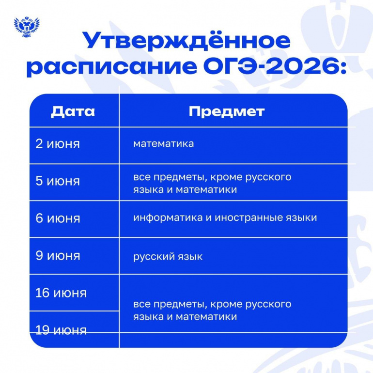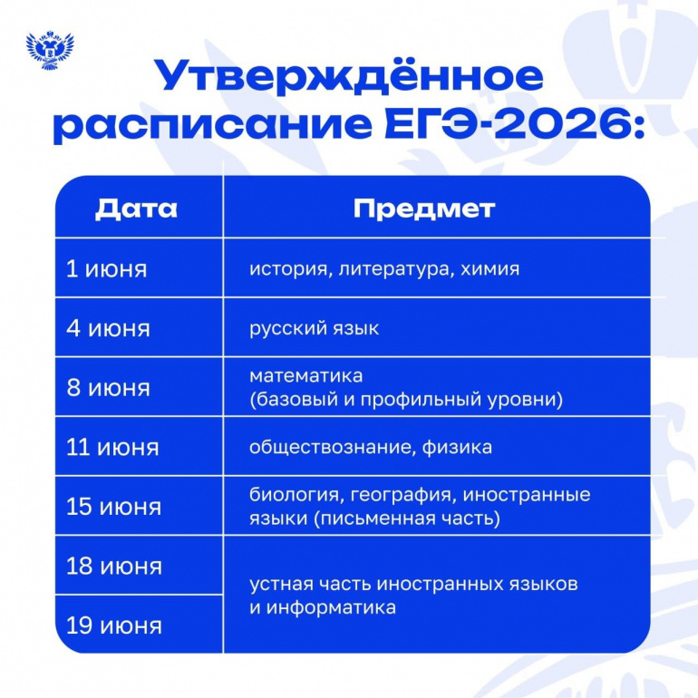 Единое расписание и период проведения основного государственного экзамена (ОГЭ) для 9-х классов и единого государственного экзамена (ЕГЭ) для 11-х классов в 2026 году утверждены приказами Минпросвещения и Рособрнадзора. В приказах — информация о том, как будут проходить выбранные экзамены, сколько они будут длиться и каковы требования к использованию средств обучения и воспитания при его проведении.