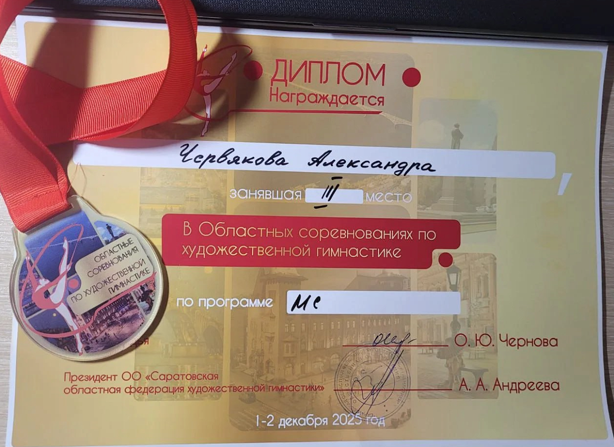 Александра Червякова — бронзовый призер первенства Саратовской области по художественной гимнастике.
