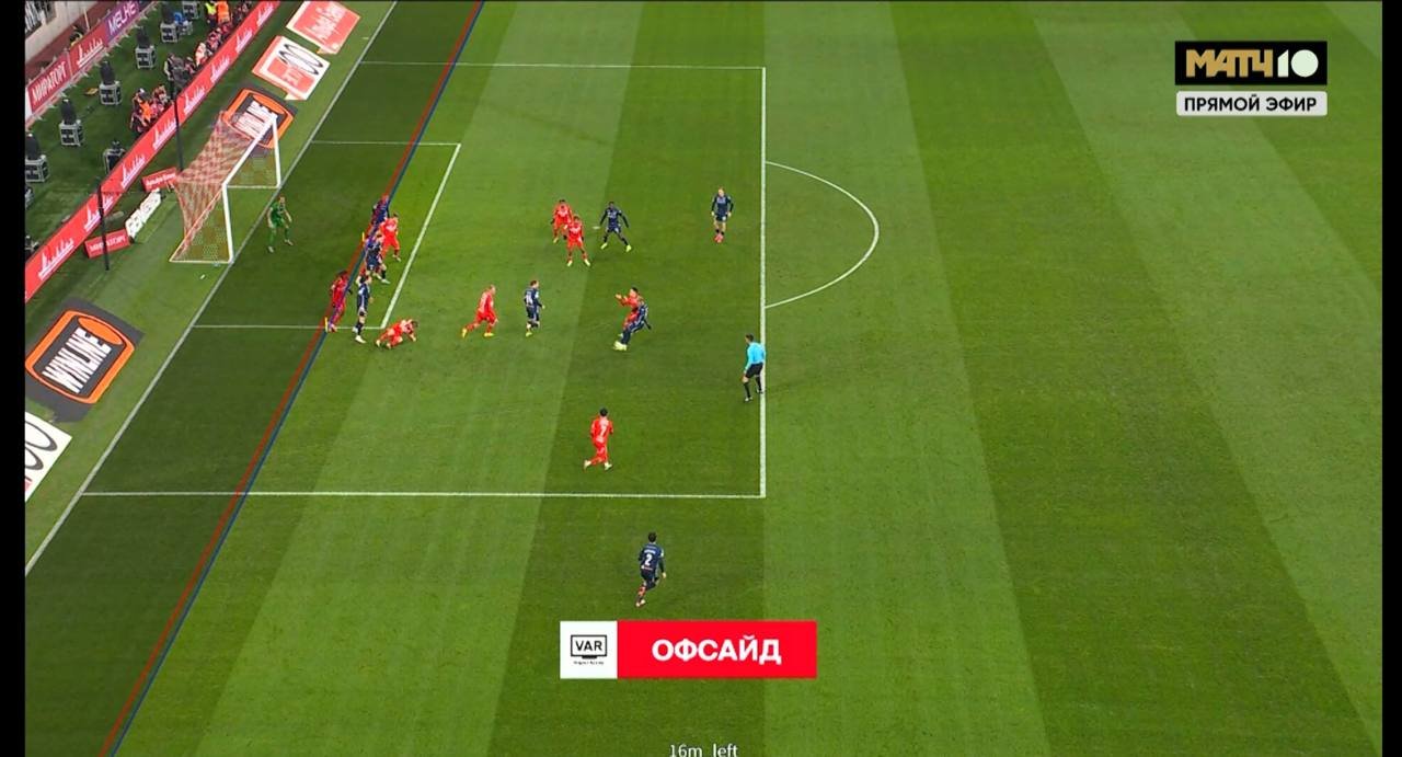Кажется, что в этом моменте арбитры очень сильно поспешили. К тому же, офсайдные линии были показаны аж спустя 15 минут! За это время красно-белые сами успели открыть счет, а бело-голубые так и не смогли создать еще один стопроцентный момент.