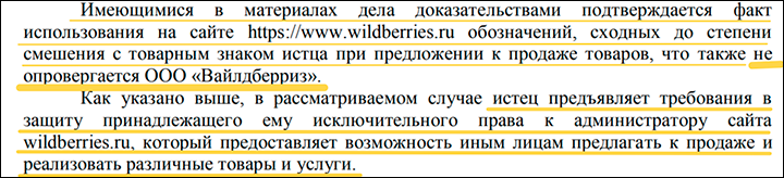 Один из примеров судебных разбирательств по поводу реализации контрафакта на сайте "ВБ". Скриншот выдержки из решения Арбитражного суда Московской области.