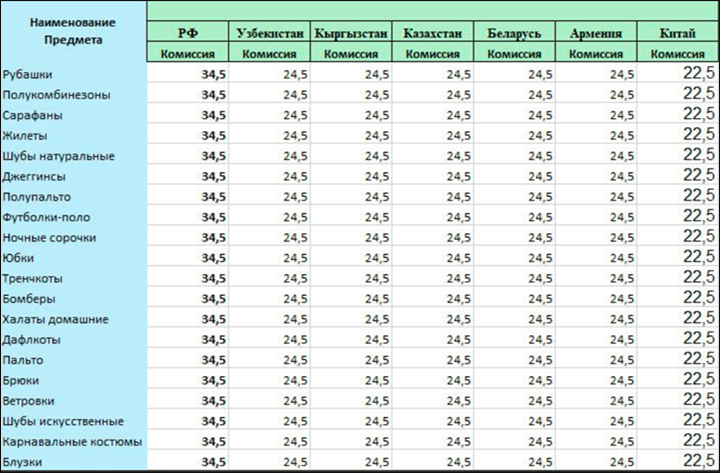 Для отечественных фабрик комиссия на одежду без учёта банковского эквайринга составляет 30-34,5%, в то время как с китайских производителей маркетплейс берёт всего 22,5%, а с киргизских – 24,5%,