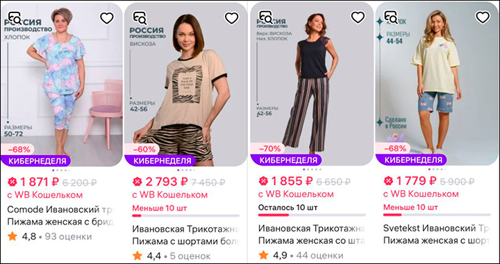 "Вайлдберриз" тем временем понизил скидки для постоянных покупателей, которые раньше могли доходить до 60 процентов. В итоге если раньше русская пижама в "чёрную пятницу" стоила с учётом всех комиссий 800 рублей, то теперь она подорожала до 1600 рублей. Понятно, почему продажи китайских пижам зашкаливают – они вдвое дешевле отечественных. При этом в силу объективных причин потребление в России падает, цены растут, товара становится меньше. Киргизские и китайские пижамы на таком фоне выглядят намного привлекательнее ивановских…