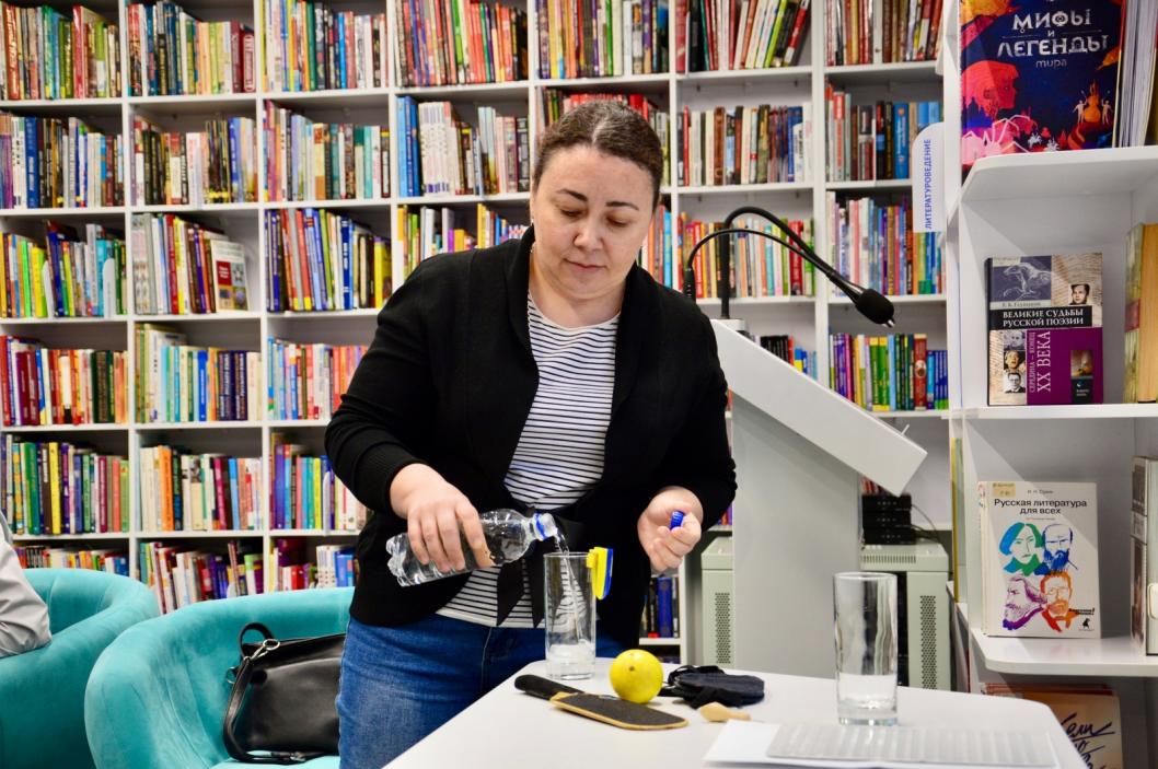 Юлия Могильникова, работающая экскурсоводом в интерактивном пространстве «Мир на ощупь», познакомила ребят с техническими приспособлениями, облегчающими быт: от устройства для определения цвета до прибора для измерения уровня жидкости в стакане, созданного тюменским изобретателем.