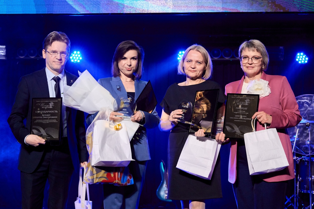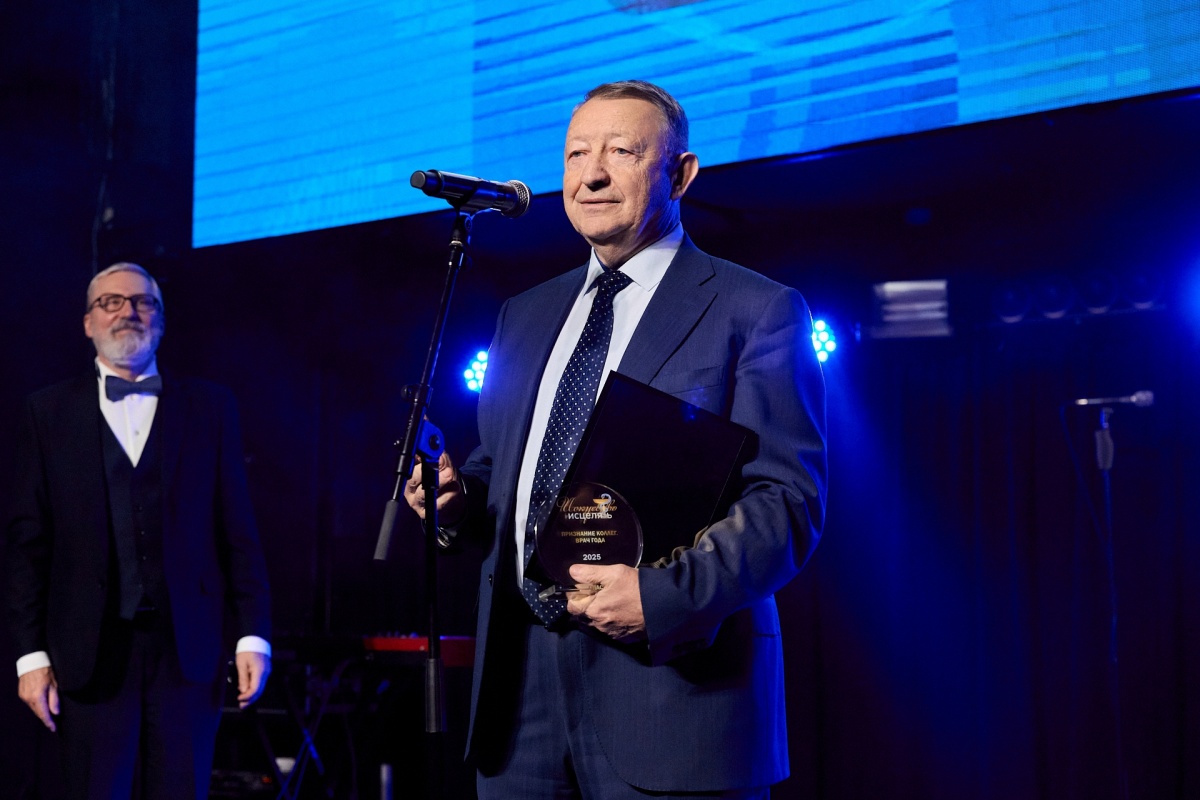 Еще одну важную награду — «Признание коллег» — получил доктор наук, заведующий кафедрой рентгеноэндоваскулярной диагностики ПИМУ Борис Шахов. Он посвятил преподаванию в сфере медицины более 50 лет! За что и заручился максимальной поддержкой экспертов. Со сцены его поздравил председатель жюри Алексей Душкин.