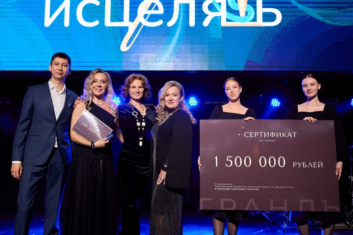 После награждения победителей народного голосования гостей ждал масштабный (и, как выяснится позже, не единственный) розыгрыш от генерального партнера премии — компании YUNIKA. Сейчас в Нижнем Новгороде этот девелопер строит сразу два значимых объекта — клубный дом бизнес-класса «Резиденция» на улице Белинского, первая очередь которого была сдана в конце октября, и ЖК «Трио» на улице Комсомольской. Еще в планах компании в начале 2026 года стартовать с проектом премиум-класса в границах улиц Шевченко и Малой Ямской — ЖК «Грандъ». В качестве подарка девелопер подготовил сертификат на 1,5 миллиона рублей на покупку квартиры в ЖК «Грандъ».