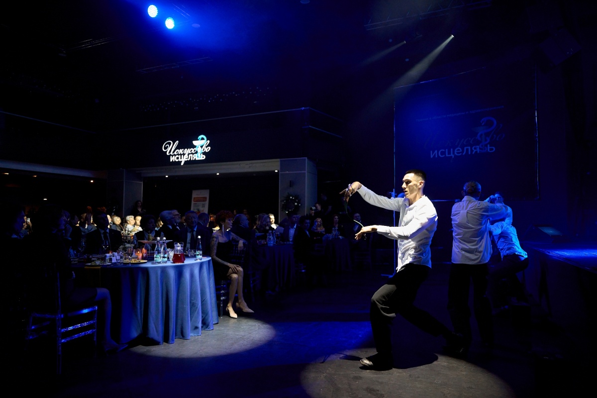 Еще мгновение, и ведущий Илья Гладцын приглашает всех собравшихся за столы. Пришло время начать церемонию и узнать, кто же стал победителем. В 2025 году премия «Искусство исцелять» включала в себя 21 номинацию. Гости уже были в приятном предвкушении. А когда у них за столами внезапно возникли танцоры, эффект «вау» сработал на все 100%.