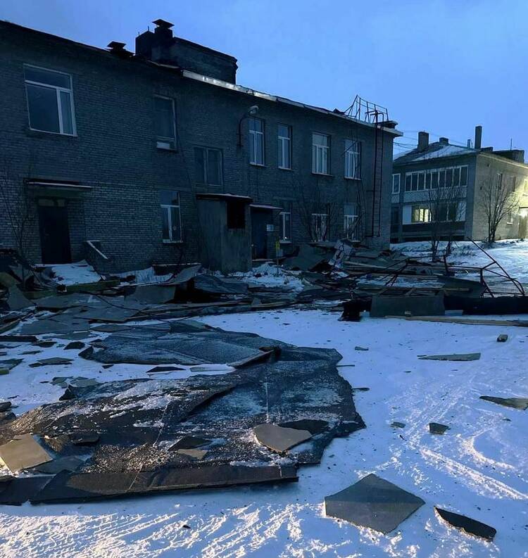 Сильный ветер в ночь с 7 на 8 декабря сорвал кровлю на здании, где располагаются архивный отдел администрации Ловозерского округа и отдел ГИБДД в поселке Ревда.
