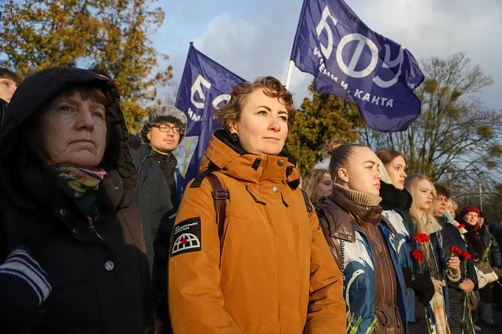 Делегация БФУ им. И. Канта приняла участие в церемонии возложения цветов к вечному огню мемориального комплекса «1200 воинам-гвардейцам». Почтили память воинов, павших при защите Родины, более двухсот студентов и сотрудников университета, а также губернатор Калининградской области Алексей Беспрозванных, депутаты Государственной Думы, сенаторы Российской Федерации, представители правительства и Законодательного собрания Калининградской области, администрации и городского совета депутатов Калининграда, руководители территориальных органов федеральных ведомств, военнослужащие, кадеты, юнармейцы, ветераны, активисты общественных организаций, предприятий и молодежи, участники региональной образовательной программы «Герои39».