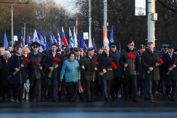 В ходе митинга были поименно названы герои, которым звание было присвоено посмертно. Среди них — участники специальной военной операции, военнослужащие и сотрудники силовых ведомств: Алексей Бровкович, Алексей Журавлев, Виталий Мариенко, Валерий Паламарчук, Владимир Носов, Сергей Чебнев, Алексей Катериничев, Евгений Зиничев, Иван Шамшев, Станислав Круковский, Игорь Свиридов, Евгений Колесников, Юрий Дмитриев. Сегодня в Калининградской области проживают Герои Российской Федерации: Сергей Баринов, Валерий Фадеев, военно-морские летчики Павел Кретов и Игорь Матковский, участники специальной военной операции Александр Завадский и Владимир Титов. В 2022 году Президент России Владимир Путин лично вручил Александру Завадскому высшую награду — медаль «Золотая Звезда».