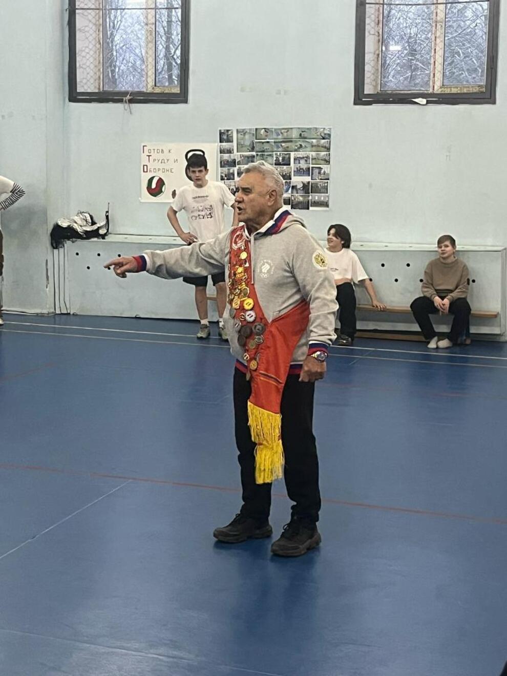 Уважаемый спортсмен провел совместную зарядку, в которой приняли участие 65 кадетов и школьников.