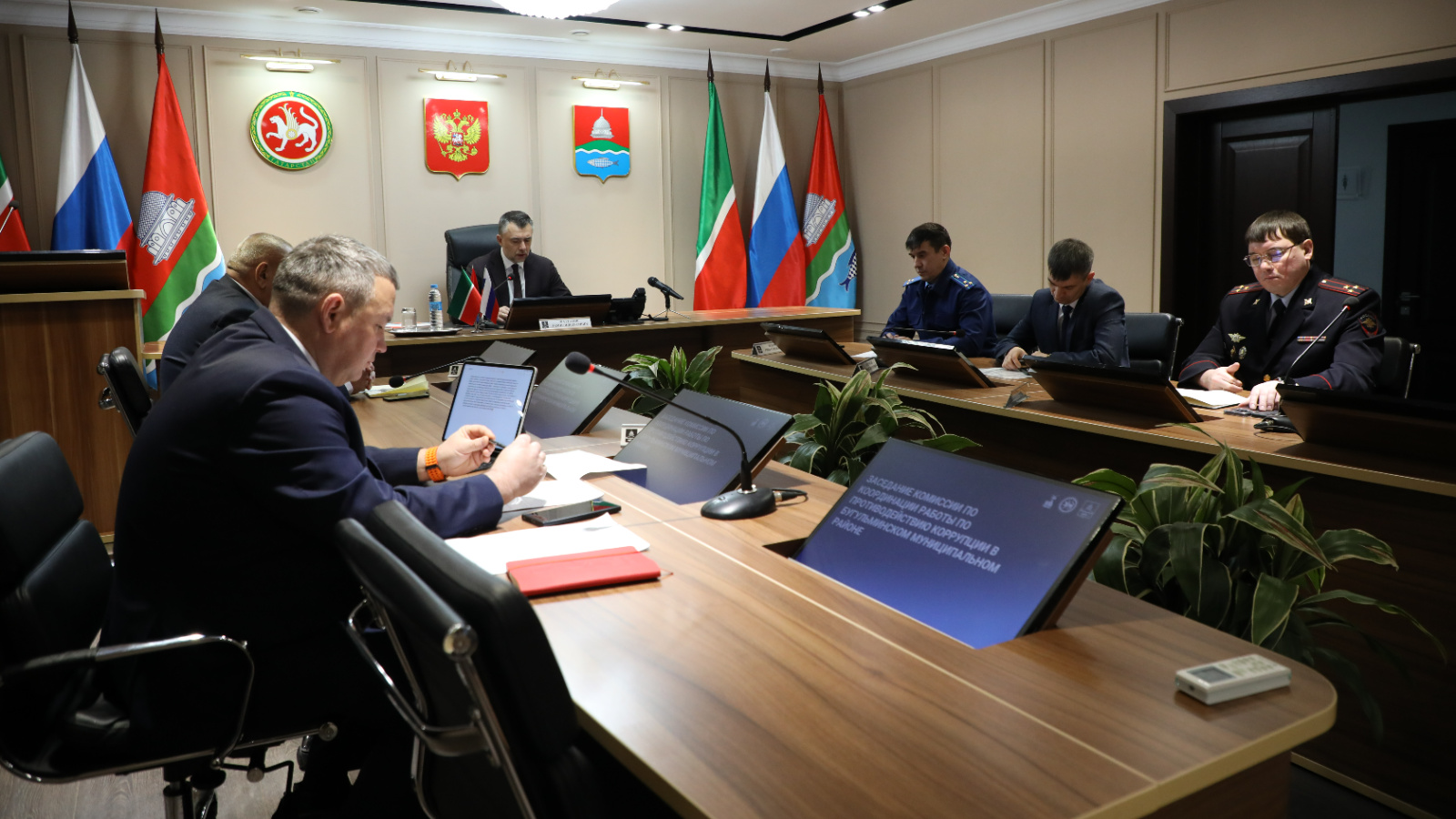 В мэрии Бугульмы состоялось очередное заседание Комиссии по координации работы по противодействию коррупции. В нем приняли участие члены Комиссии по координации работы по противодействию коррупции, Бугульминский городской прокурор – Ришат Шакиров, начальники отделов аппарата Совета Бугульминского муниципального района, Исполнительного комитета Бугульминского муниципального района, руководители подведомственных учреждений, главы сельских поселений, представители средств массовой информации.