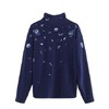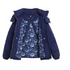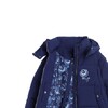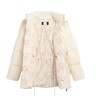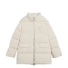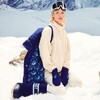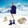 В коллекции вошло семь предметов гардероба: ультратёплый кремовый пуховик длины миди с капюшоном и наплечными ремнями, а также более короткая модель куртки в синем цвете, флиска с воротом на молнии и рельефным дизайном с узнаваемыми узорами, джинсы с узорами гжели на поясе, у карманов и боковых швов в контрастном оттенке денима. Линейка аксессуаров включает шапку-ушанку с меховым слоем внутри, «дутый» шарф и рукавицы – все они украшены вышивкой в виде цветка, который часто встречается в гжельской росписи. Два главных цвета коллекции – кобальтовый синий и молочный белый.